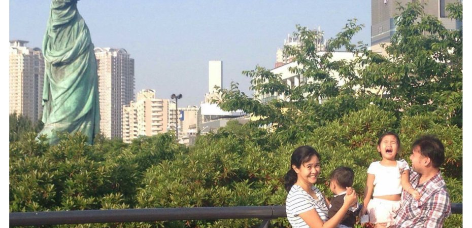 Our twelfth entry in this blog is our trip to Odaiba in Tokyo, Japan. Odaiba is a large artificial island in Tokyo Bay, across the Rainbow Bridge from central Tokyo.  Odaiba, along with Minato Mirai 21 in Yokohama, are two of the only places in the Greater Tokyo Metropolitan area where the seashore is accessible, and not blocked by industry and harbor areas. Here are some of our photos with the Rainbow Bridge (the one with me and Sai) and with the side view of the mini replica of the Statue of Liberty (lots of people are in front of it for selfies, so we just opted to stay at the sides. hehehe…).