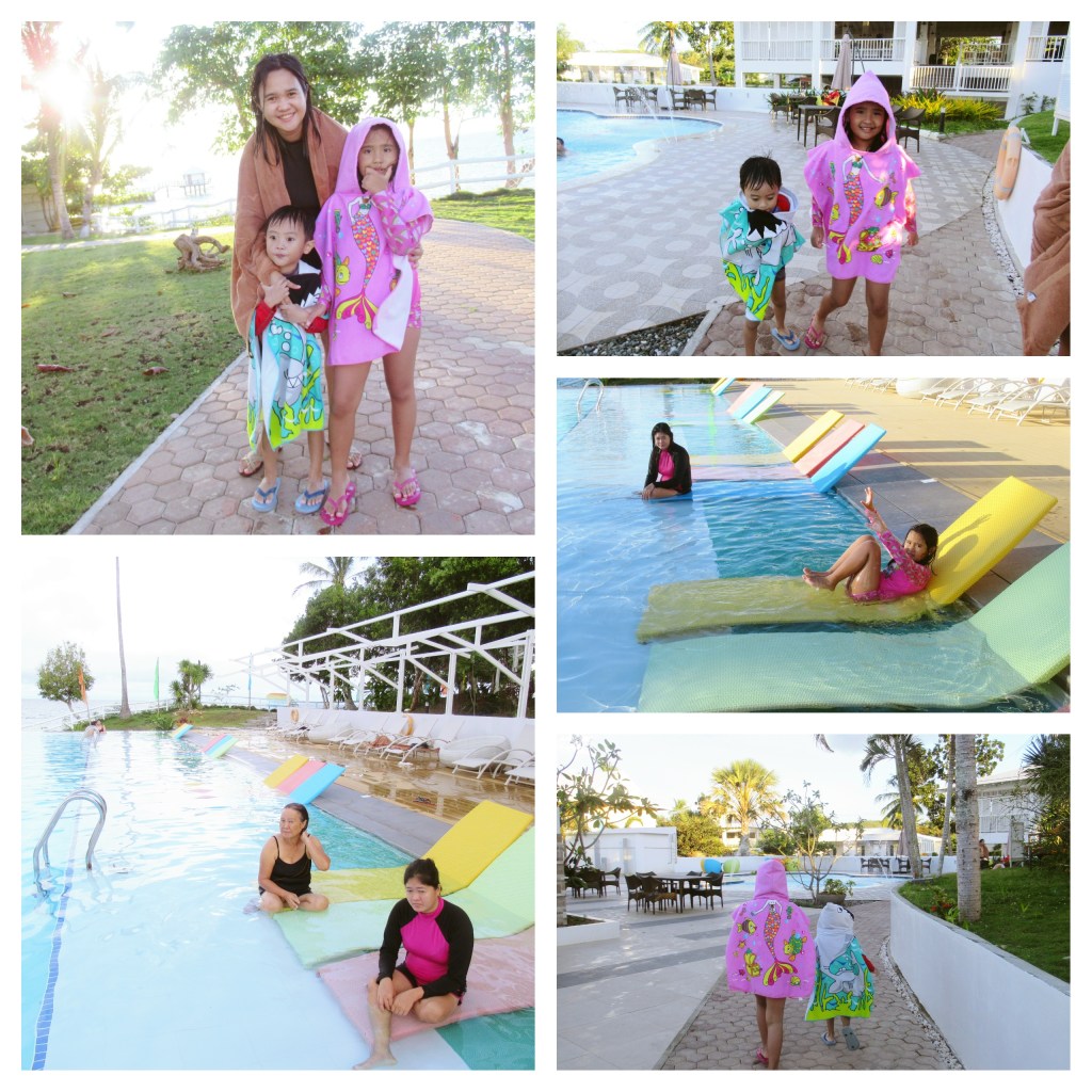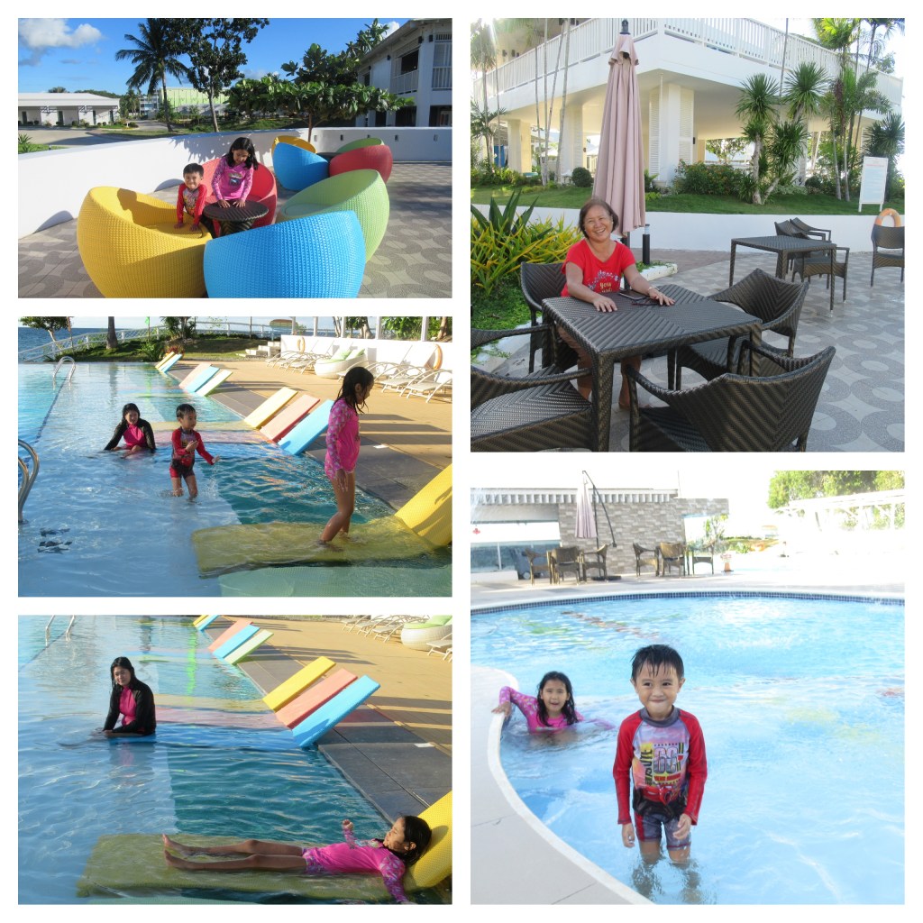 We finally have our dip in the pool and as always, everyone loves the pool. The little birthday boy is happy 🙂 It seems like we are the only ones here. Nice! Sai loves to jump in the small pool and Ate Rei loves lying on her back on the colorful bed chairs, or whatever that is called. hehe…