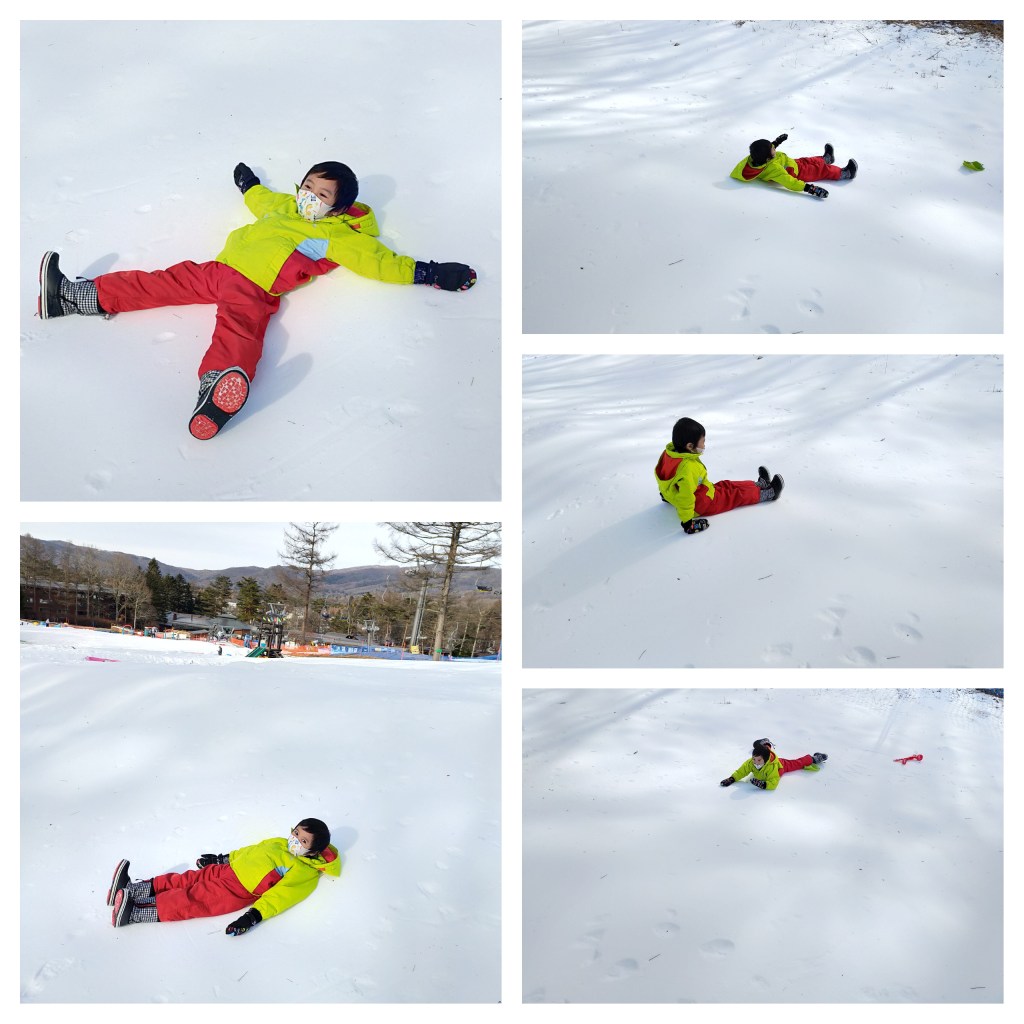 Not a lot of people are here, since not a lot of Japanese people are beginners. This makes it a perfect place for families with kids, specially the ones like us, who did not even bother to ski or try snowboarding, we just want to touch snow. lol π