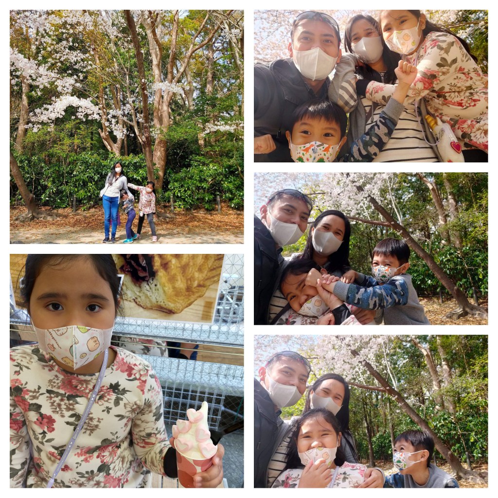 Ate Rei and Sai are resting under the pretty Sakura Trees while busy eating their cotton candies. It was quiet a warm day so they are not enjoying this trip, at all! haha! They just wanted to sit down and eat sweets.