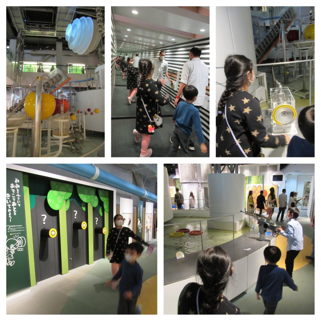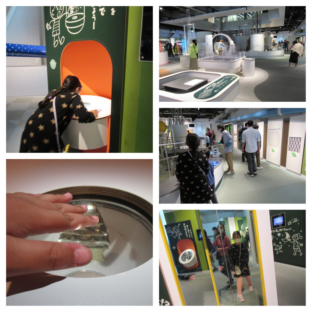 Ate Rei and Sai are happy to try the hands on experiments inside the museum. Though it was quite hard to see some of the explanations as they are written in Japanese.