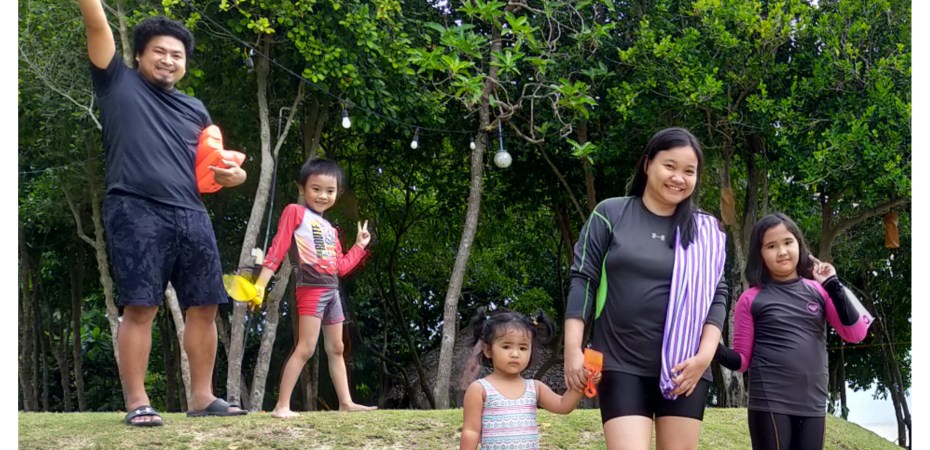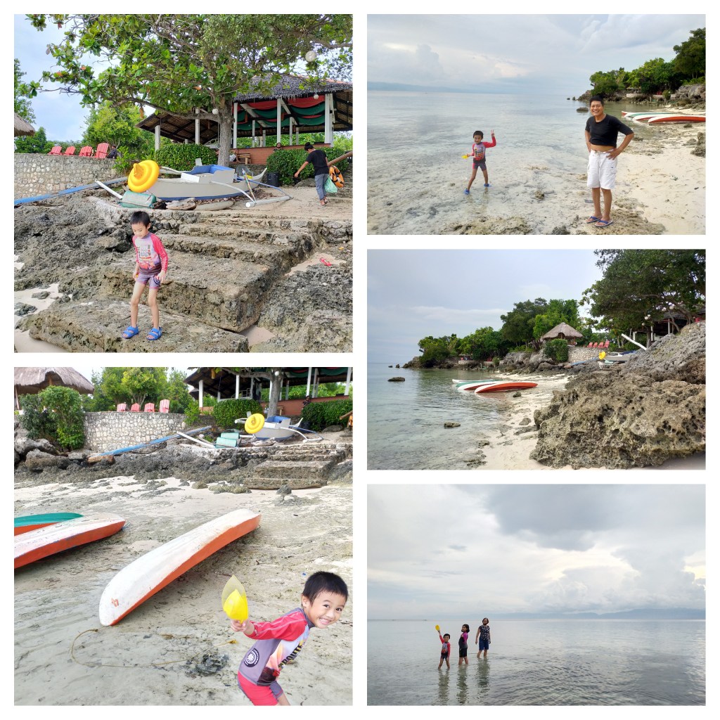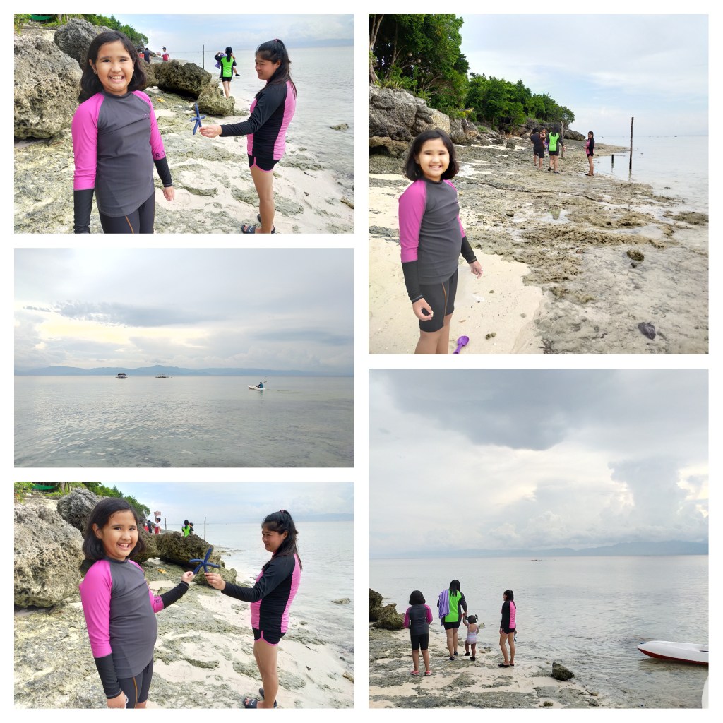 We immediately went to the beach for a good water dip but it was low tide. So we searched the beach area with little fishes and start fishes. Ate Rei found a blue one!