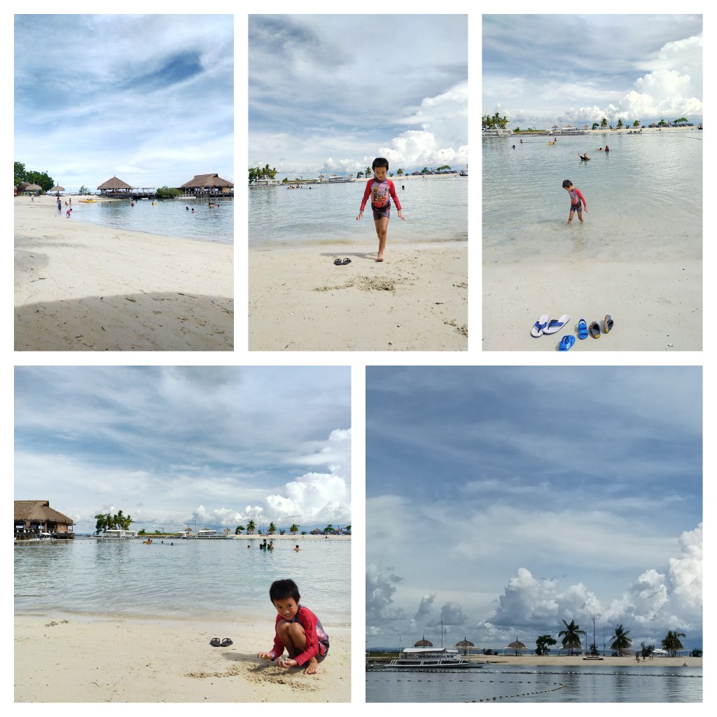 Our little Sai is enjoying his time making sand castles, or some sand pits (as I don’t see any castles in there. hehehe) Touching sand is rare activity for him as he doesn’t like to spend much time by the beach, but he loves pool, just like Hearty.