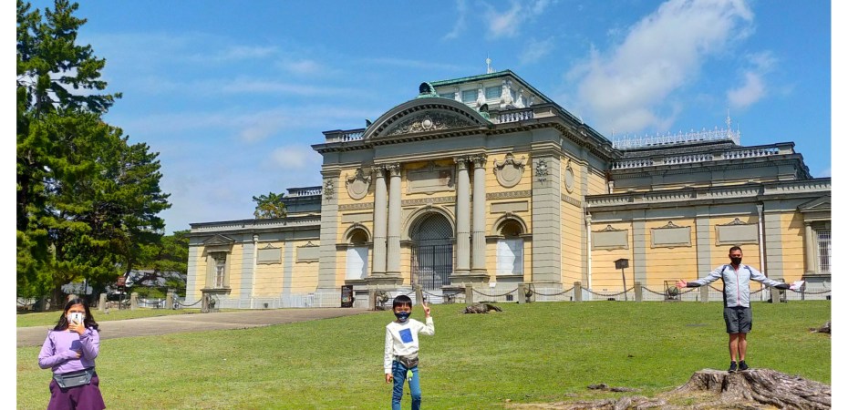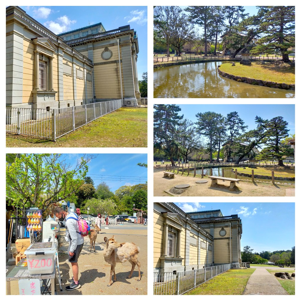 The Nara National Museum (Nara Kokuritsu Hakubutsukan), located in Nara Park, is an art museum which primarily displays Japanese Buddhist art. Established in 1889, the museum retains its original building and is joined by a new wing that is connected to the original building by an underground passage. Here is our little Sai making friends with some of the deer.