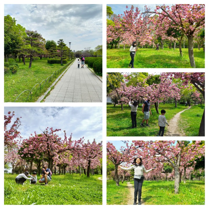 After exploring the Osaka castle inside and out, we strolled back to the station through another walking route. And we got to see this place full of pink trees. I was shocked why no one else is around, just us. We did a lot of photos and had a sort-of picnic (as we did not prepare picnic mats). This small place, filled with pink trees, for me is really amazing. Blessed be! π