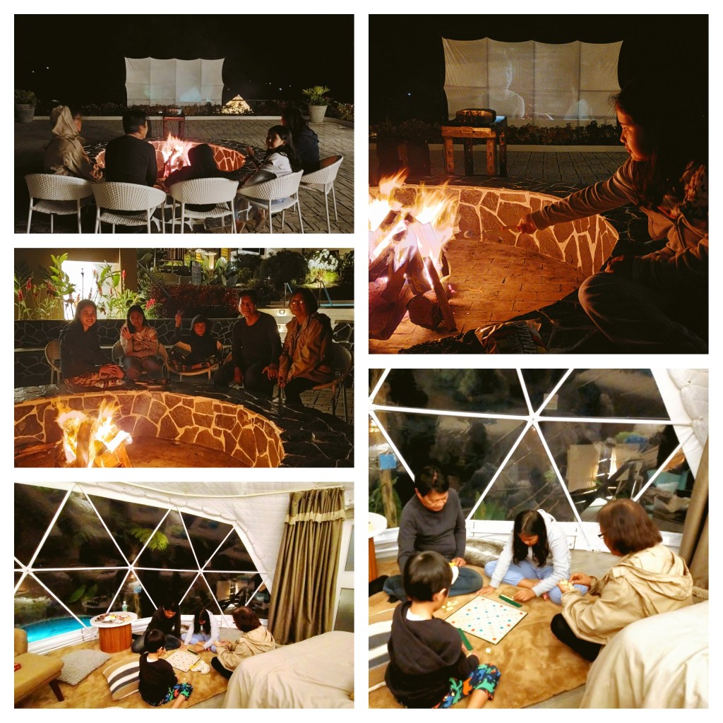 Also a unique feature of this dome room is that it does not have TV. haha. Which is good, at least we get to rest our eyes from those technologies. You get to feast your eyes on nature instead, much healthier. We brought card games and scrabble, which are past time games of Lolo and Gooya.