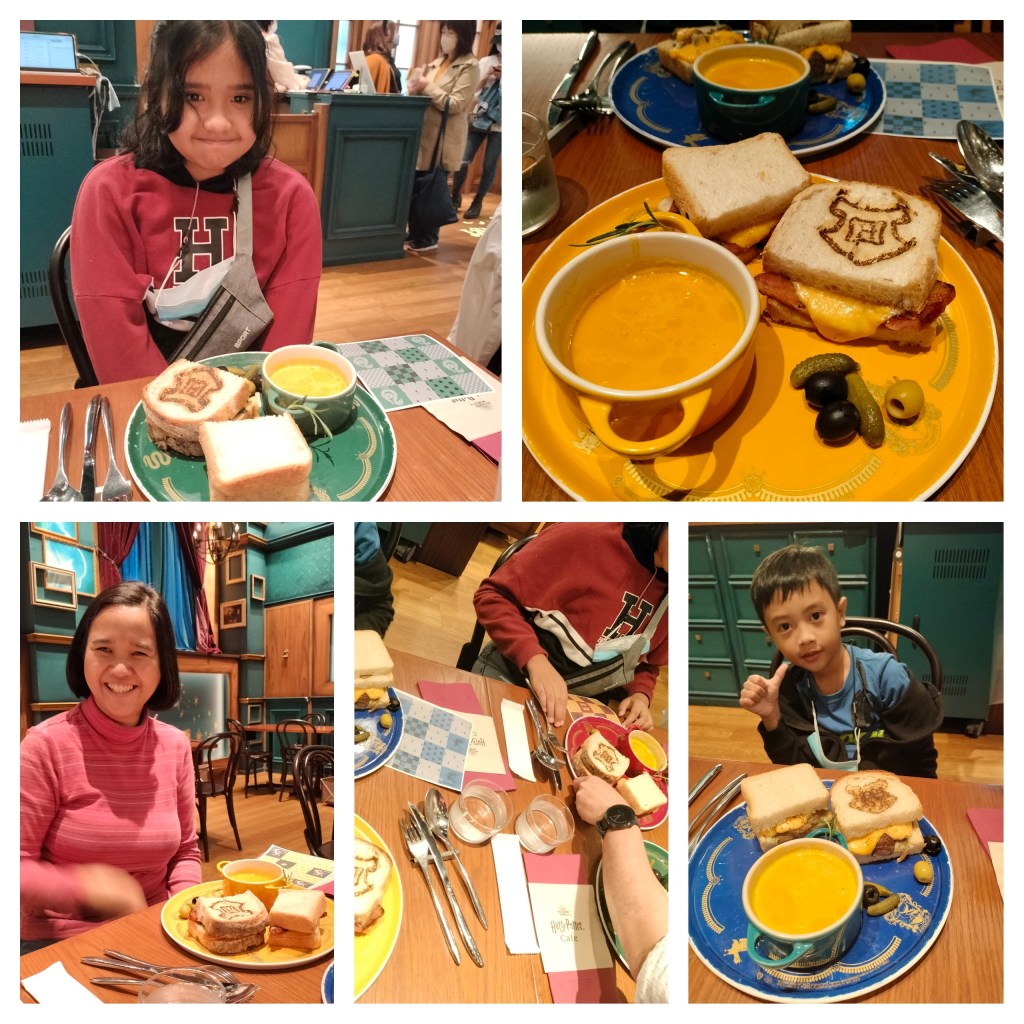 The food is great. We each have themed plates. Ate Rei got the Slytherin plate, Sai with his Ravenclaw plate, I have the Hufflepuff plate, and Papa Dave got the Gryffindor plate. The soup is very delicious! We sometimes exchange plates as we wanted to take a bit of other team’s meal too. 🙂