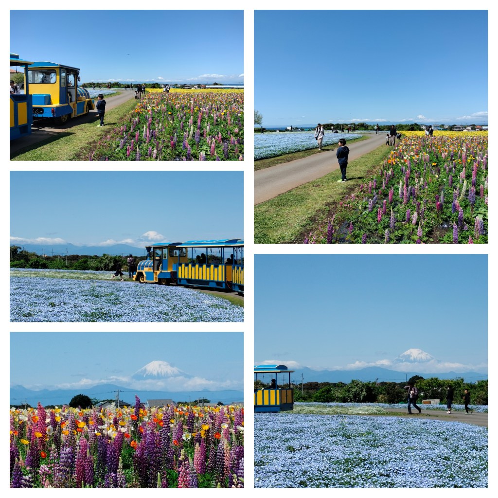 We then explored my favorite area, the flower fields. Mount Fuji is seen as a backdrop from the field. Since it is spring time, colorful flowers are in bloom. There is a field for blue ones, pink flowers, yellows, and a mix of colorful blooms.