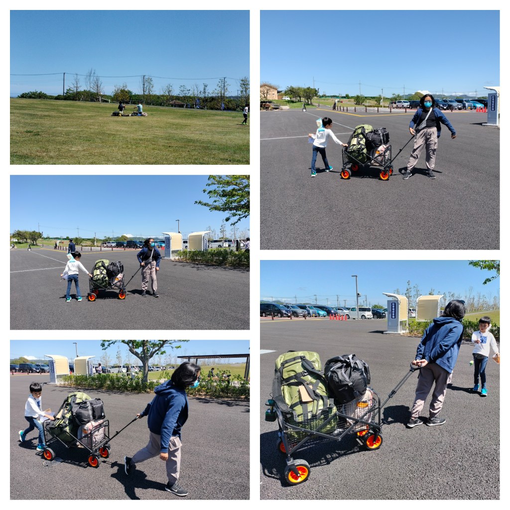 Our 217th entry in this blog is our first time trip to Nagai Uminote Park – Soleil Hill in Yokosuka, Kanagawa, Japan. This is our first time to go on a camping trip here in Japan. Everybody woke up early and ready to go, carrying our own camping bags. Just look at how big Papa Dave’s bag is. That is our camping tent! 🙂