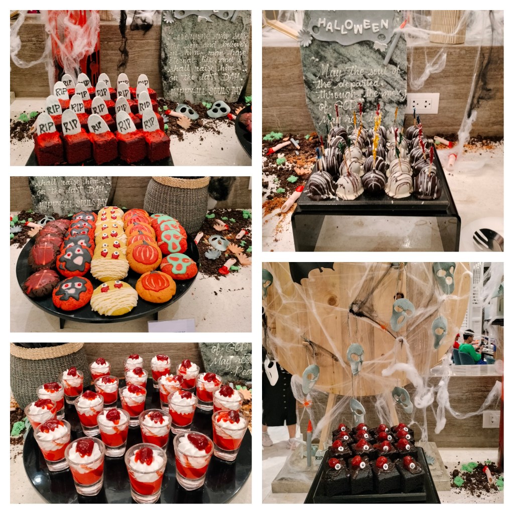 And the best part is the buffet. The food are Halloween themed as well. Sai is enjoying the cute desserts. I hope he will eat even one! haha.