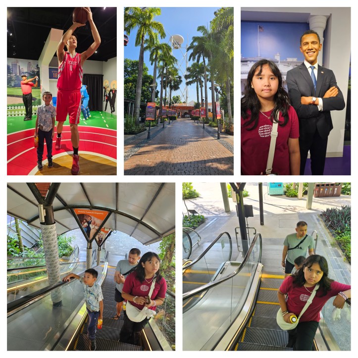 We started our day with the monorail ride to the island, and got our morning coffee at Starbucks. hehe. Sentosa Island, known mononymously as Sentosa, is an island located off the southern coast of Singapore’s main island. The island is separated from the main island of Singapore by a channel of water, the Keppel Harbour, and is adjacent to Pulau Brani, a smaller island wedged between Sentosa and the main island. We then headed to our first attraction, the Madame Tussaud’s.
