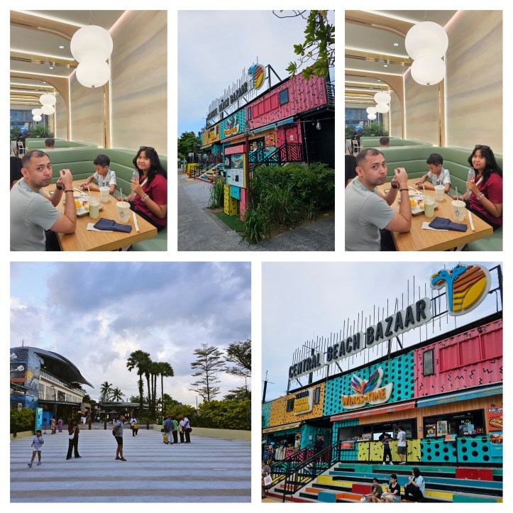 Our energy was drained from the Luge ride and our beach stroll, so we went to find another snack place again, we ordered some drinks and snacks at Shake Shack. This is just located near the Central Beach Bazaar where the Wings of Time will be shown later.