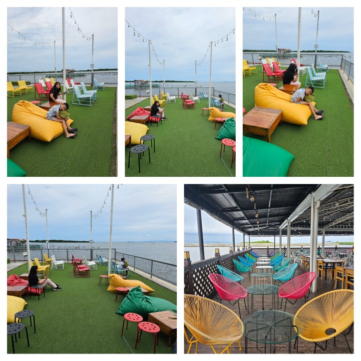 We are the first and only customers at this time. haha. I bet we are the only ones who did not know that it will open late. We ordered drinks and we sat at the lounge area to watch the sea and the islands nearby.