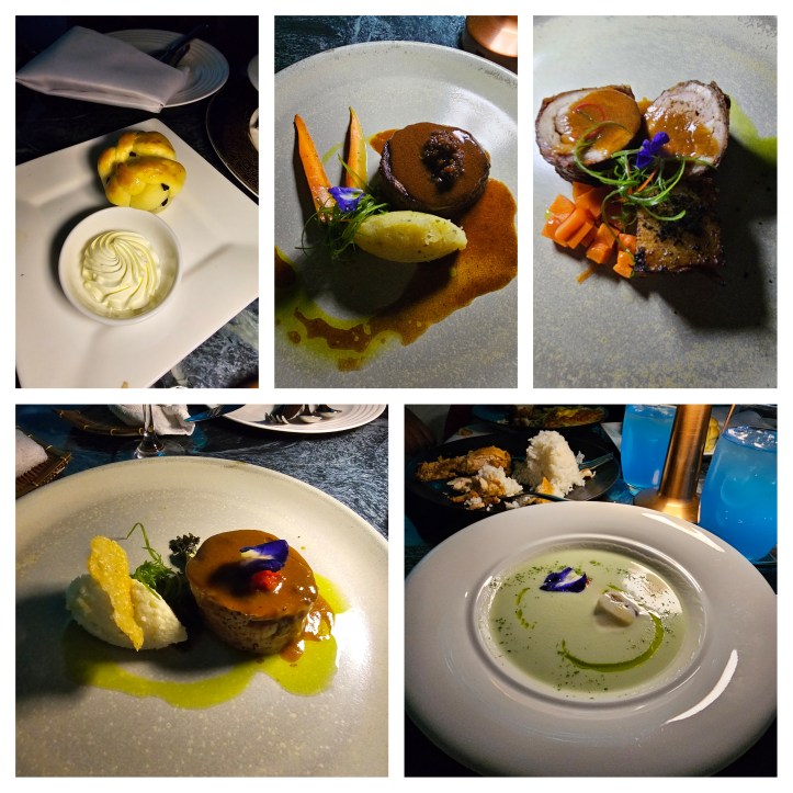For our third or main course, we have the slow cooked pork, chicken mousseline, fish in lacto foam, and sous vide native beef.