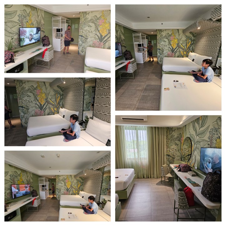 Right after our lunch meal, we headed to our rooms. We got 3 rooms in all, 1 for us, 1 for gooya and lolo, and 1 for Tita Karen. Our room is so big and has a very nice flowery green wallpaper. Astoria Palawan offers a variety of accommodations, such as villas, alcoves, The Nest, and Premier rooms, styled with vibrant tropical colors and upscale touches.