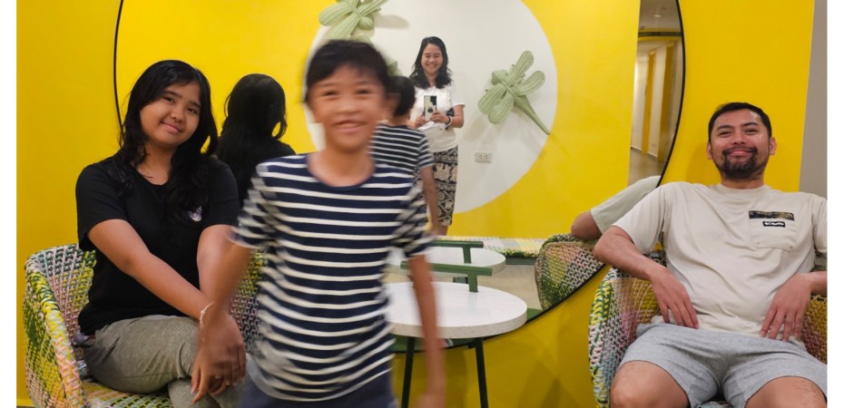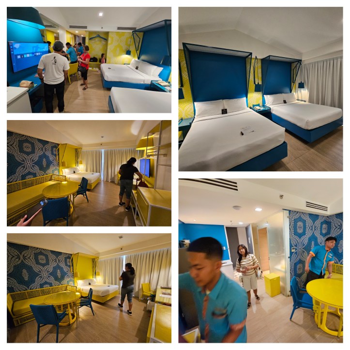 Gooya’s room is blue themed, while Tita’s room is yellow, with a mini sala. π After resting in our rooms for a bit, we changed to our swimming suits and headed to the pool.