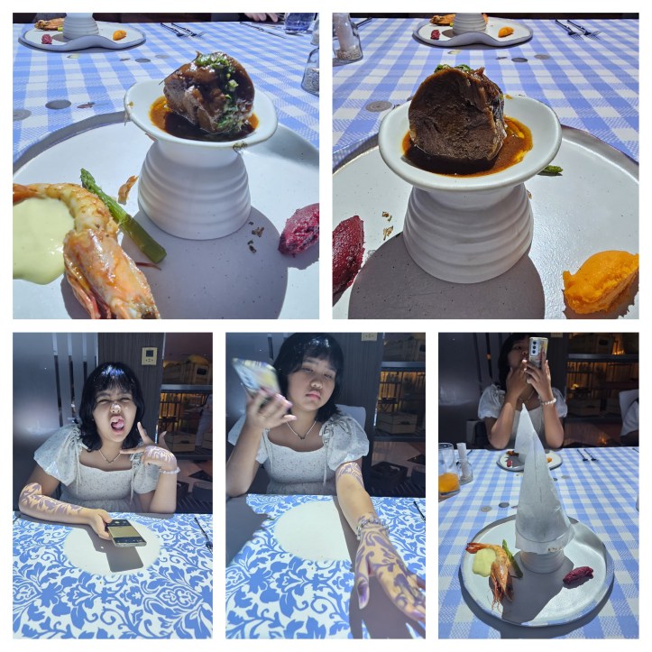 Most of the guests are here and we are so ready to eat and enjoy the meal. 🙂 Each course is paired with a short animated scene that tells part of a story, often themed around travel, culinary adventures, or historical journeys like Marco Polo’s Silk Road expedition.