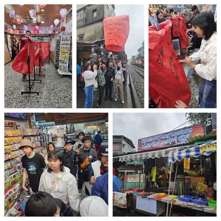 After our breakfast in the hotel, we immediately went to our bus and headed for Shifen Old Street. This is a historic railway street famous for its sky lantern tradition, where visitors write wishes and release lanterns along the train tracks. Lined with small shops and local snacks, it offers a charming mix of old‑town atmosphere, culture, and nearby natural attractions like Shifen Waterfall.