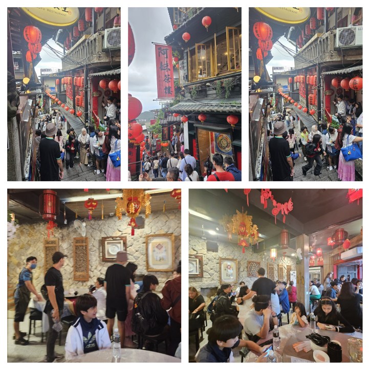 That was a fun first time experience as we made our own lantern messages and released our wishes for the heavens to accept. hehe. Our next stop is another old street, the Jiufen Old Street. But first, we had our lunch at the famous Jiufen Red House restaurant. This is a well‑known dining spot offering traditional Taiwanese cuisine in a historic red‑brick building. Set along Jiufen Old Street, it’s popular for its classic dishes, nostalgic atmosphere, and views that capture the town’s old‑time charm.