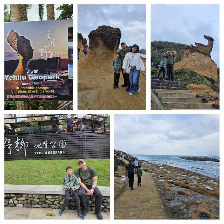 Our knees are shaking from the long stairs going up and down the narrow alleys. hehe. 🙂 Our next stop is the Yehliu Geopark in New Taipei City, Taiwan, a famous coastal park known for its unique rock formations shaped by wind and sea erosion, including the iconic Queen’s Head. It offers dramatic ocean views and showcases Taiwan’s fascinating natural geology.